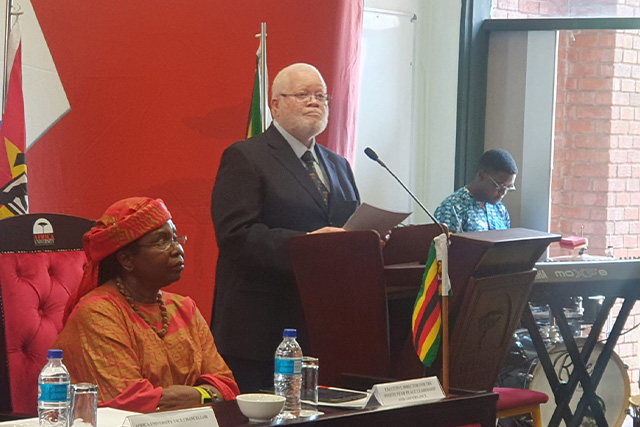 Presidente Joaquim Chissano profere discurso de abertura na Universidade de África em Mutare, Zimbabué